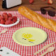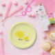 Halbe Zitrone und lächelnde Zitronenscheibe Pappteller