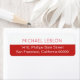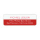 Ihr eigener Name und zusätzliche Informationen (Adresse im eleganten und dünnen Schriftart) auf halbem Rot/Weiß-Rückadresslabel