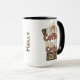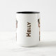 Humores Design für Programmierer oder Programmierer. Zwei "zu gehen" Kaffeetassen oben mit den Worten "Halbkaffee, Halbkoder" geschrieben in lustig braun und beige mit einer Tastatur-Abbildung unten. Das Design ist auf beiden Seiten der Tasse, mit einem Platz in der Mitte, um es mit einem Namen anpassen. Erhältlich in verschiedenen Größen und Tasse Handgriff und Innenfarben, inklusive Weiß.