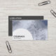Eine Visitenkarten-Vorlage mit weißem, halbkreisförmigem Panel unten, verlassen für Ihren Firmennamen und Geschäftstyp. Das halbrunde Panel wird auf einem Foto- oder Kunstwerkhintergrund platziert (der auch geändert werden kann). Name und andere Kontaktdaten auf der Rückseite.