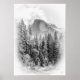 Ein Schwarz-Weiß-Foto von Yosemites Halbkuppel, aufgenommen nach dem ersten Schneefall der Saison. Bringen Sie etwas Natur in Ihre Zuhause!