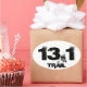 Hier ist ein ovaler Aufkleber, der jedem sagt, dass man nicht nur den Schmerz des Laufens von 23,1 Meilen bewältigen kann, sondern auch die Wurzeln, Felsen, Ströme, Höhenlagen und manchmal auch den Schlamm überleben kann, der mit dem Laufen des Weges einhergeht.
