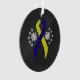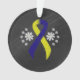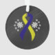 Blau-gelbes Band mit Blume im Chalkboard-Stil. Das blaue und gelbe Band steht für das festgelegte Fahrerbewusstsein und Down Syndrome Awareness. Oktober ist Down Syndrome Awareness Month.