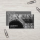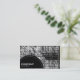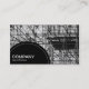 Eine Geschäftskartenschablone mit einer schwarzen halbkreisförmigen Platte, die mit einer punktierten Linie des Weiß in der Unterseite verlassen wird für Ihren Firmennamen verziert wird und Geschäft schreiben. Die halbkreisförmige Platte wird über einen Foto- oder Grafikhintergrund gesetzt (der auch geändert werden kann). Name und anderer treten mit Details über die Rückseite in Verbindung.