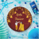 Haldi Mehndi Sangeet Indischer Hochzeitsmaroon und gelbe Glockengarlands mit einem niedlichen Hindu-Paar Karikatur Cartoon Hochzeitsvorlagenpapier Teller, personalisierte Geschirr Dekoration indischen Brautpaar Braut mit gelben punjabi tragen