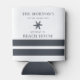 Das Nautical Dose Cooler zeichnet sich durch ein Design aus Seestern und Streifen im Stil der Küste aus. Personalisieren Sie den benutzerdefinierten Text mit einem Familiennamen und Strandhaus (oder einem anderen Titel) mit dem Jahr festgelegt und Ort. Hale Marine blau-weiß Farbe Schema.