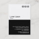 Ein Visitenkarteschablonenentwurf mit einer weißen umrandeten schwarzen unteren Hälfte. Der vordere Entwurf umfaßt ein Foto oder eine Grafik zur Hälfte Spitzen. Das gleiche Thema wird auf der Rückseite ohne das Bild wiederholt und erlaubt Raum für andere Details und weitere Kundenbezogenheit. Das Motiv mit drei Quadraten, das als dekorative Eigenschaft auf der Rückseite verwendet wird, ist von einer von Zazzles nützlichem Bild-Schriftart und kann als dekorative Eigenschaft verwendet werden oder durch Ihr eigenes Logo oder Dekoration ersetzt werden.