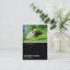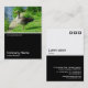 Eine Visitenkartenvorlage mit weißer, schwarzer Unterhälfte. Die Vorderseite besteht aus einem Foto oder Kunstwerk in der oberen Hälfte. Das gleiche Thema wird auf der Rückseite ohne das Bild wiederholt, sodass Raum für andere Details und weitere Anpassung. Das als Dekorationsmerkmal auf der Rückseite verwendete Quadrat-Motiv stammt aus einem der nützlichen Schriftart von Zazzle und kann als Dekorationsmerkmal verwendet oder durch Ihr eigenes Logo oder Dekor ersetzt werden.