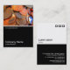 Eine Visitenkartenvorlage mit weißer, schwarzer Unterhälfte. Die Vorderseite besteht aus einem Foto oder Kunstwerk in der oberen Hälfte. Das gleiche Thema wird auf der Rückseite ohne das Bild wiederholt, sodass Raum für andere Details und weitere Anpassung. Das als Dekorationsmerkmal auf der Rückseite verwendete Quadrat-Motiv stammt aus einem der nützlichen Schriftart von Zazzle und kann als Dekorationsmerkmal verwendet oder durch Ihr eigenes Logo oder Dekor ersetzt werden.