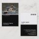 Eine Visitenkartenvorlage mit weißer, schwarzer Unterhälfte. Die Vorderseite besteht aus einem Foto oder Kunstwerk in der oberen Hälfte. Das gleiche Thema wird auf der Rückseite ohne das Bild wiederholt, sodass Raum für andere Details und weitere Anpassung. Das als Dekorationsmerkmal auf der Rückseite verwendete Quadrat-Motiv stammt aus einem der nützlichen Schriftart von Zazzle und kann als Dekorationsmerkmal verwendet oder durch Ihr eigenes Logo oder Dekor ersetzt werden.