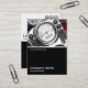 Ein Visitenkarteschablonenentwurf mit einer weißen umrandeten schwarzen unteren Hälfte. Der vordere Entwurf umfaßt ein Foto oder eine Grafik zur Hälfte Spitzen. Das gleiche Thema wird auf der Rückseite ohne das Bild wiederholt und erlaubt Raum für andere Details und weitere Kundenbezogenheit. Das Motiv mit drei Quadraten, das als dekorative Eigenschaft auf der Rückseite verwendet wird, ist von einer von Zazzles nützlichem Bild-Schriftart und kann als dekorative Eigenschaft verwendet werden oder durch Ihr eigenes Logo oder Dekoration ersetzt werden.