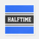 Dieses sportliche, sportliche Design zeichnet sich durch feinen HALFTIME-Text in einem schwarzen Streifen mit schwarzem, hervorgehobenem Hintergrund aus, der mit zwei weißen Rennstreifen und leuchtend blauen Außenrand-Streifen versehen ist. Der Text in diesem Design kann personalisiert sein.