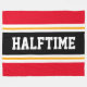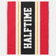 Dieses sportliche, sportliche Design zeichnet sich durch feinen HALFTIME-Text in einem farbig hervorgehobenen, breiten schwarzen Streifen mit doppelweißen und gelben Rennstreifen gegen leuchtend rote Außenstreifen aus. Der Text in diesem Design kann personalisiert sein.