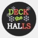 Roter, grüner und weißer Text mit weißen Schneeflocken lautet "Deck the Halls" auf T - Shirt, Totensäcken, Tasse, Magneten und vielem mehr.