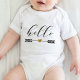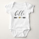 Herzlich willkommen in der Welt mit diesem bezaubernden "Hallo"-Pfeil mit Herz-Baby-Bodysuit. Das Design zeichnet sich durch eine niedliche Pfeil- und Herzgrafik aus, mit dem Wort "Hello" in spielerischer, moderner Schrift. Dieser Babykarosserieanzug ist ein nachdenkliches und praktisches Geschenk für neue Eltern. Um diese Vorlage weiter anzupassen, klicken Sie auf "Diese Vorlage personalisieren" und wählen Sie dann "Bearbeiten mit dem Entwurfswerkzeug". So können Sie alle Schriftart hinzufügen oder löschen, Stil, Größe und Farbe ändern und Text und Muster nach Belieben neu positionieren. Babyanzug, Hallo, Hallo, Pfeildesign, Herz, neues Kindergeschenk, Drehbuch, niedliche, Säugling-Kleidung, Kinderkleidung, Babydusche, Babydusche, Gender-neutrale, komfortable Babykleidung, Zazzle.
