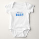 Minimalistischer „Hello Baby“-Bodysuit, speziell für Babyjungen entworfen. Mit sauberer Typografie und einem sanften Blauton ist dieses Outfit perfekt, um ein Neugeborenes stilvoll willkommen zu heißen.