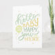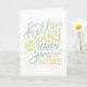 "Hallo Baby So glücklich bist du hier" Geburtskarte in gelben Minzfarben.