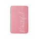 Diese moderne Badematte zeichnet sich durch eine hallo schöne Typografie in weißer Farbe auf rosa Hintergrund aus.