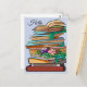 Bücherstapel mit Blume. Postkarte für einen buchliebenden Freund. großzügig