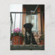 Dieser wunderschöne schwarze, scheußliche Hund schaut vom Balkon herab