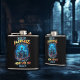 Hallo Dunkelheit meine alte Freundin Flask. © Dunkles Herz Wünsche. Diese Flasche hat ein farbenfrohes Design mit einem Skelett mit zwei Drinks.