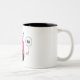 Rosa, weiße und Schwarzes hallo Eulenillustration auf weißer Tasse mit Schwarzem nach innen.