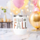 Dieses herbstbezogene Design begrüßt die Herbstsaison mit der Phrase "Hello Fall". Die Wörter sind in einem einfachen, aber optisch ansprechenden Layout angeordnet, wobei "Hello" über "Fall" platziert wird. Jeder Buchstabe in der Phrase wird in einem kühnen, blockigen Schriftart mit einer leicht bedrückten Textur präsentiert, sodass es ein rustikales, verwittertes Aussehen gibt, das das Herbstthema ergänzt.