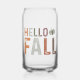 Dieses herbstbezogene Design begrüßt die Herbstsaison mit der Phrase "Hello Fall". Die Wörter sind in einem einfachen, aber optisch ansprechenden Layout angeordnet, wobei "Hello" über "Fall" platziert wird. Jeder Buchstabe in der Phrase wird in einem kühnen, blockigen Schriftart mit einer leicht bedrückten Textur präsentiert, sodass es ein rustikales, verwittertes Aussehen gibt, das das Herbstthema ergänzt.