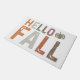 Dieses herbstbezogene Design begrüßt die Herbstsaison mit der Phrase "Hello Fall". Die Wörter sind in einem einfachen, aber optisch ansprechenden Layout angeordnet, wobei "Hello" über "Fall" platziert wird. Jeder Buchstabe in der Phrase wird in einem kühnen, blockigen Schriftart mit einer leicht bedrückten Textur präsentiert, sodass es ein rustikales, verwittertes Aussehen gibt, das das Herbstthema ergänzt.