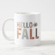 Dieses herbstbezogene Design begrüßt die Herbstsaison mit der Phrase "Hello Fall". Die Wörter sind in einem einfachen, aber optisch ansprechenden Layout angeordnet, wobei "Hello" über "Fall" platziert wird. Jeder Buchstabe in der Phrase wird in einem kühnen, blockigen Schriftart mit einer leicht bedrückten Textur präsentiert, sodass es ein rustikales, verwittertes Aussehen gibt, das das Herbstthema ergänzt.