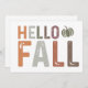 Dieses herbstbezogene Design begrüßt die Herbstsaison mit der Phrase "Hello Fall". Die Wörter sind in einem einfachen, aber optisch ansprechenden Layout angeordnet, wobei "Hello" über "Fall" platziert wird. Jeder Buchstabe in der Phrase wird in einem kühnen, blockigen Schriftart mit einer leicht bedrückten Textur präsentiert, sodass es ein rustikales, verwittertes Aussehen gibt, das das Herbstthema ergänzt.