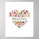 Ein buntes und bezauberndes Poster "Hello Fall", eine köstliche Feier der pulsierenden Herbstsaison. Dieses Poster strahlt warme und einladende Farbtöne aus und begrüßt die Ankunft des Herbstes auf fröhliche und lebendige Weise. Dieses Poster mit seinem charmanten und künstlerischen Design spiegelt das Wesen der Herbstschönheit wider und zeigt die Pracht der bunten Blätter, der gemütlichen Schals und der Kürbisgewürze. Hänge es in deiner Zuhause, um die Magie und Nostalgie dieser wunderbaren Saison zu umarmen. Ob für Ihre eigene Dekoration oder als nachdenkliches Geschenk - unser "Hello Fall" Poster wird Ihnen jeden Raum aufheitern und mit dem fröhlichen Geist des Herbstes füllen. Genießen Sie die sich verändernde Jahreszeit und den willkommenen Herbst mit einem farbenfrohen und aufregenden Schatten!