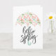 Farbenfroher Blumenschirm mit "Hello Spring" Text in modernem Drehbuch