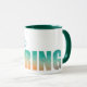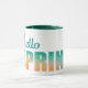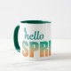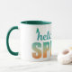 Schmetterlinggrün hallo Frühling Tasse. Moderner geometrischer Design Schriftart Trinkbehälter.