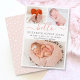 Baby Girl Birth Ankündigung 3 Foto Collage Cards. Elegante minimalistische niedliche Geburtsankündigung mit 3 Ihrer Lieblings-Baby-Fotos vorne, mit einem hübschen handgeschriebenen Text "hello" in einem Wirblen Kalligrafieschrift mit Swash oder Schwänzen in Rosa. Fügen Sie den Namen Ihres Babys auf der Vorderseite und die Geburtsdaten hinzu. Auf der Rückseite sind weiße Punkte rot-rosa Hintergrund. Man kann es leicht personalisieren.