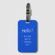 Dieser Gepäckanhänger hilft Ihnen hoffnungsvoll, schnell Ihre Tasche zu identifizieren. Er ist helles Blaues und liest, "hallo? Ist er ich, den Sie suchen?" Haha. Der Entwurf ist auf einer Seite; die Rückseite ist ein Schlitz für Ihre persönliche Identifizierung oder Visitenkarte.