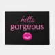 Lassen Sie sich mit diesem "Hello Gorgeous" Doormat verwöhnen. Dieses Design zeichnet sich durch eine glänzende Rosa Lippe und ein rosa Schriftart Set vor schwarzem Hintergrund aus.