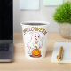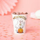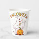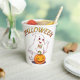Ein netter, lächelnder Geist, mit einem lächelnden Pumpkin, die uns für ein glückliches Party begrüßen.