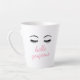Niedliche und glamouröse latte Tasse mit hübschen Wimpern und Text "hello wunderschön".