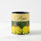 Rett die Honigbiene, indem du deine Dandelion lasse zu wachsen. Foto einer glücklichen Honigbiene, die eine fröhliche, hellgelbe Dandelion-Blume auf einem Grasrasen besucht. Mit einem Zitronenband gelb, um deinen personalisierten Namen zu halten.