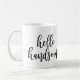 Diese Tasse kennzeichnet die Phrase "hallo hübsch" in einem modernen schwarzen handgeschriebenen Skript.