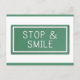 Attitude ist alles! Diese lustige motivierend Postkarte wird Ihnen helfen, jemandem den Tag zu erleichtern. Die Postkarte enthält das Zitat "Stopp and Smile", das auf einem hübschen grünen und weißen Hintergrund hervorgehoben wird. Postkarten sind eine kostengünstige Alternative zu Grußkarten, wenn Sie gewollt haben, eine kurze Nachricht zu senden. Leere Postkarten sind für viele Gelegenheiten großartig...... Kommunikation mit Kunden und Kunden Persönliche Bemerkungen Zeigen Dankbarkeit an Freunde und Familie für Geschenke Hochzeiten und Brautpartys Anfügen an Geschenkkörbe, und Goody-Taschen Ein paar andere Postkarten können Sie genießen...