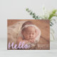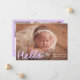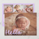 Herzlich willkommen bei Ihrem kleinen Foto mit dieser skurrilen Geburtshinweise, die das horizontale Foto Ihres Babys mit "Hello" in einem spielerischen Lavendel-Skript-Overlay zeigt. Fügen Sie den Namen Ihres Babys, das Geburtsdatum und die Statistiken auf der Vorderseite hinzu, um einen wirklich persönlichen Sake zu schaffen. Die Rückseite zeigt eine Collage von sechs quadratischen Fotos mit Platz unten, um Familiennamen oder eine herzliche Nachricht einzufügen. Eine tolle Wahl für kleine Mädchen oder traumhafte, pastellfarbene Themen.