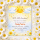 Helle und fröhliche Hello Little Sunshine Baby Shower Einladung, entworfen mit fröhlichen Pastelltönen, weichen Wolken und warmen Sonnendekoren. Die sanfte Wasserfarben-Sonne und Himmelskunst schaffen eine fröhliche und einladende Atmosphäre, um ein kleines Wesen auf dem Weg zu feiern. Perfekt für Frühlings- oder Sommer-Sonnenschein-Themen-Baby-Shower mit einem warmen, leichten Gefühl, das Blumen- und Himmel-inspirierte Party-Dekorationen ergänzt.