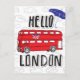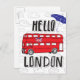 Hallo London Handschrift Schild mit Regenschirm, rotem Bus und britische Flagge in Form von Herzen auf Wolken. | © und ® Bigstock® - Alle Rechte vorbehalten.