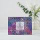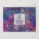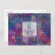 Manchmal ist es praktisch, einfach ein paar Postkarten zur Hand zu haben, um einem Lieben eine Note zu geben. Diese hier hat eine "Hi There!"-Meldung auf der Vorderseite in einem schlanken, lässigen Schriftart mit Handschrift. Dieser Schriftart (oder seine Farbe) kann nach Belieben geändert werden. Es verfügt auch über eine Template-Einrichtung für Ihren Namen und Ihre Rücksendeadresse auf der Rückseite. (Dies kann entfernt werden, wenn Sie diese teilen oder geben und diese Daten nicht drucken gewollt haben.) Ich habe auch einen durchsichtigen, quadratischen Block und einen schlichten schwarzen Rahmen hinzugefügt (der auf Wunsch auch in eine andere Farbe geändert werden kann). Diese können für eine längere Nachricht skaliert werden, wenn Sie es vorziehen. /// Das Hintergrundbild ist mit einer farbenfrohen, stark strukturierten, gemusterten, digitalen abstrakten Kunst versehen, die abstrakt wiederholt und in Purpur, Blues, aquamarin und Rosa bespritzt wird.