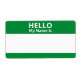 Diese Standard-Grün-Weiß-Aufkleber-Etiketten enthalten Platz, um die Namen der Gäste bei Ihrer Veranstaltung zu schreiben, sei es ein Party, ein Geschäftstreffen, eine Schulveranstaltung, eine Wiedersehen oder ein Party oder Anlass. Behalt oder ändere den Text "Hello My Name is" mit den einfachen Vorlagen.