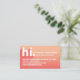 Machen Sie einen ersten Eindruck und stellen Sie sich mit unseren Visitenkarten "hi my name is" potenziellen Kunden vor. Das Design zeichnet sich durch "hi" in einem modernen typografischen Design mit einem diagonalen Textschatten aus. Stilvolle Korallensteigung verleiht dem Ganzen ein modernes, feines Aussehen. Personalisieren Sie Ihre Namen, Titel und Kontaktinformationen. Die Rückseite ist im minimalistischen Stil mit personalisiertem Monogramm und Social Media Handle konzipiert.