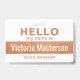 Personalisieren Sie einfach diese grundlegende benutzerdefinierte "Hallo, mein Name ist" Angestelltenname und berufliche Titel Unternehmen Abzeichen. Erhältlich mit verschiedenen Hintergrundfarben und Anbaugeräten. Keine Mindestbestellmenge.