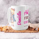 Hallo erste Klasse niedlich Mädchen Teddy Bär in einer Jacke Schultasche erste Klasse Mädchen Geschenke personalisierte Mug, Erinnerungsgeschenk für einen ersten Grader. .